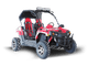 La seguridad es una prioridad máxima con cinturones de seguridad de 4 puntos, un pedal de acelerador ajustable, un sistema de jaula superior de alta resistencia, redes laterales y reposacabezas. Las características estándar incluyen un velocímetro y odómetro, faros delanteros Hi/Lo, luz trasera con luces de freno, luces direccionales y luces intermitentes. La parte superior tipo parasol tipo bikini brinda protección contra el sol, mientras que la velocidad máxima del UTV de 45 mph garantiza que pueda seguir el ritmo del grupo.